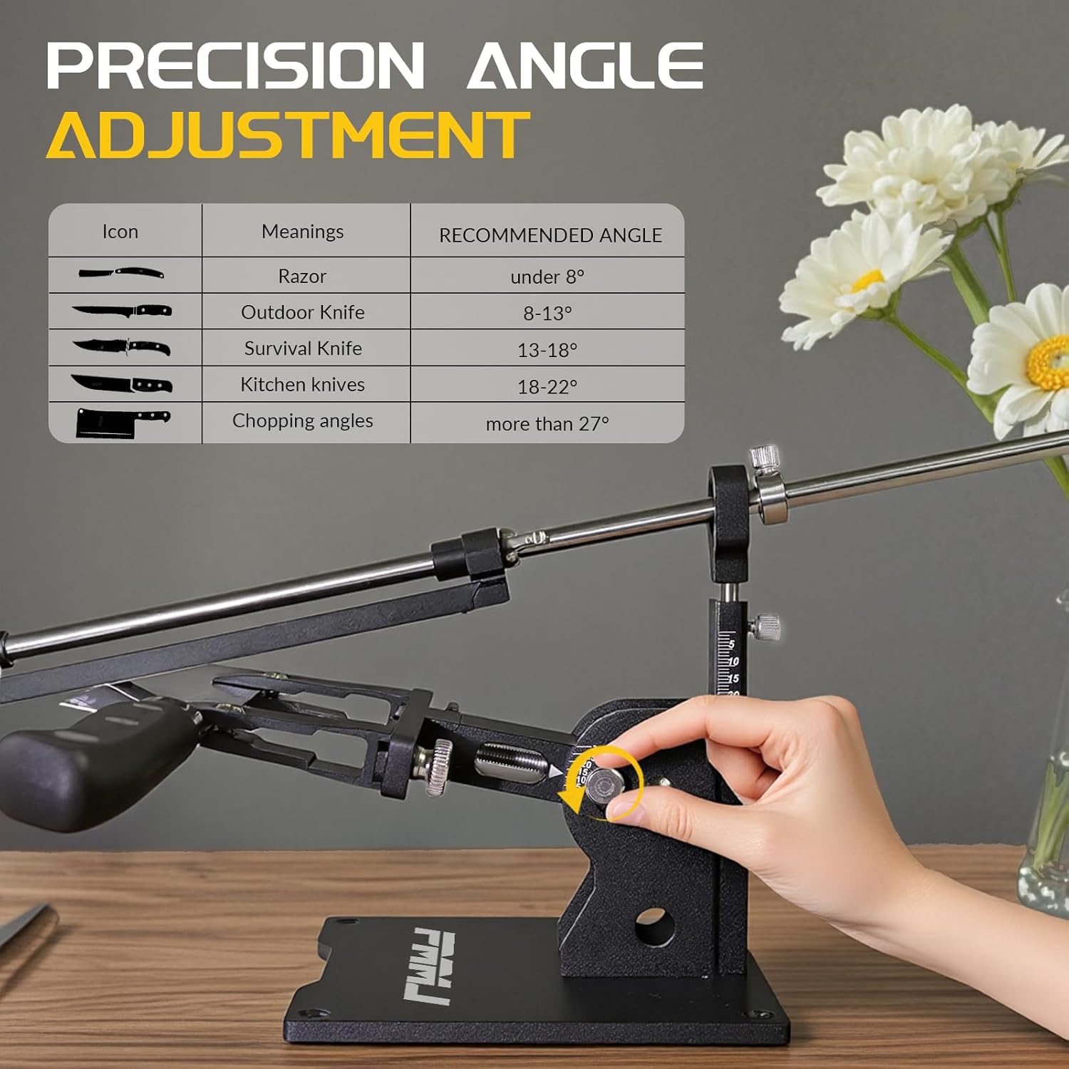 - Precise Adjustable Design:The system allows for adjustments in angle and fixture width to match your blade's profile. This customizable fit helps maintain consistency throughout the sharpening process. Select the appropriate setting to accommodate different knife types.