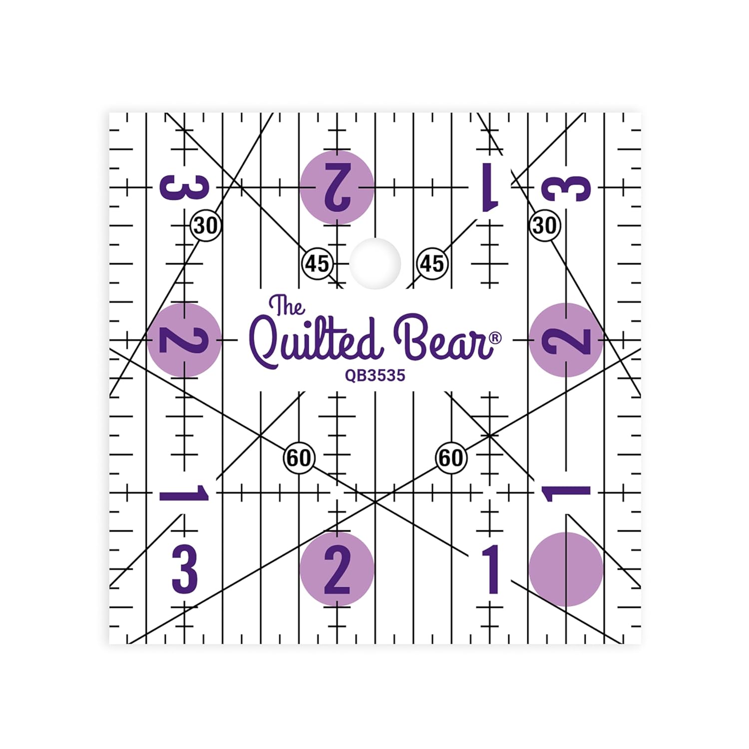 The Quilted Bear Quilting Rulers - Transparent Acrylic Non Slip Quilting, Patchwork & Sewing Ruler with Clear Black Lines & 30, 45 & 60 Degree Angles for Perfect Accuracy & Precision (3.5" x 3.5")