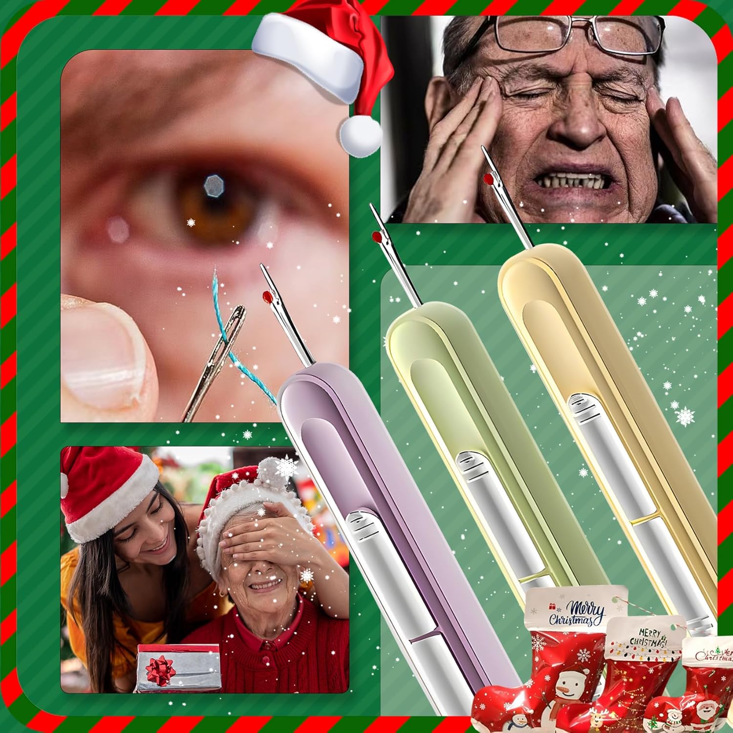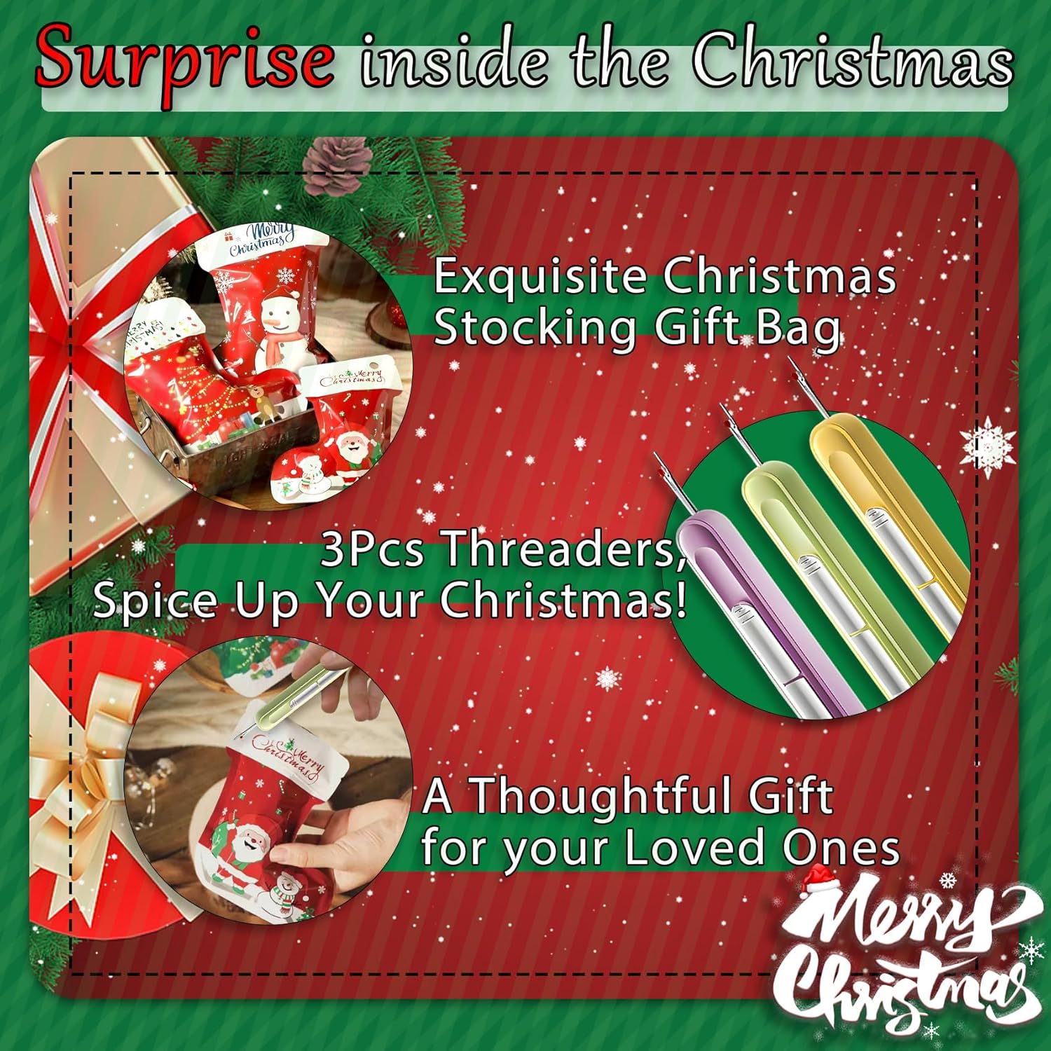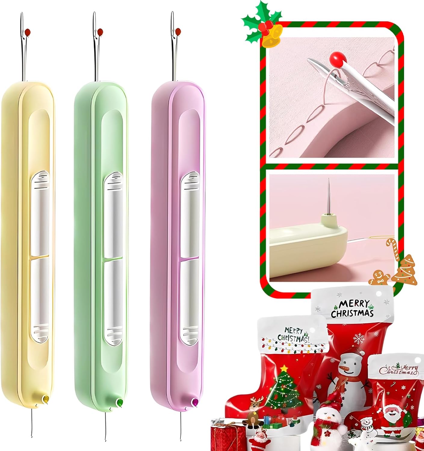 Upgraded 2 in 1 Automatic Needle Threaders Seam Ripper,Quilting Supplies Sewing Kit,Quick Sewing Machine Loop Needle Threaders (Christmas Limited Edition Red-3pcs)