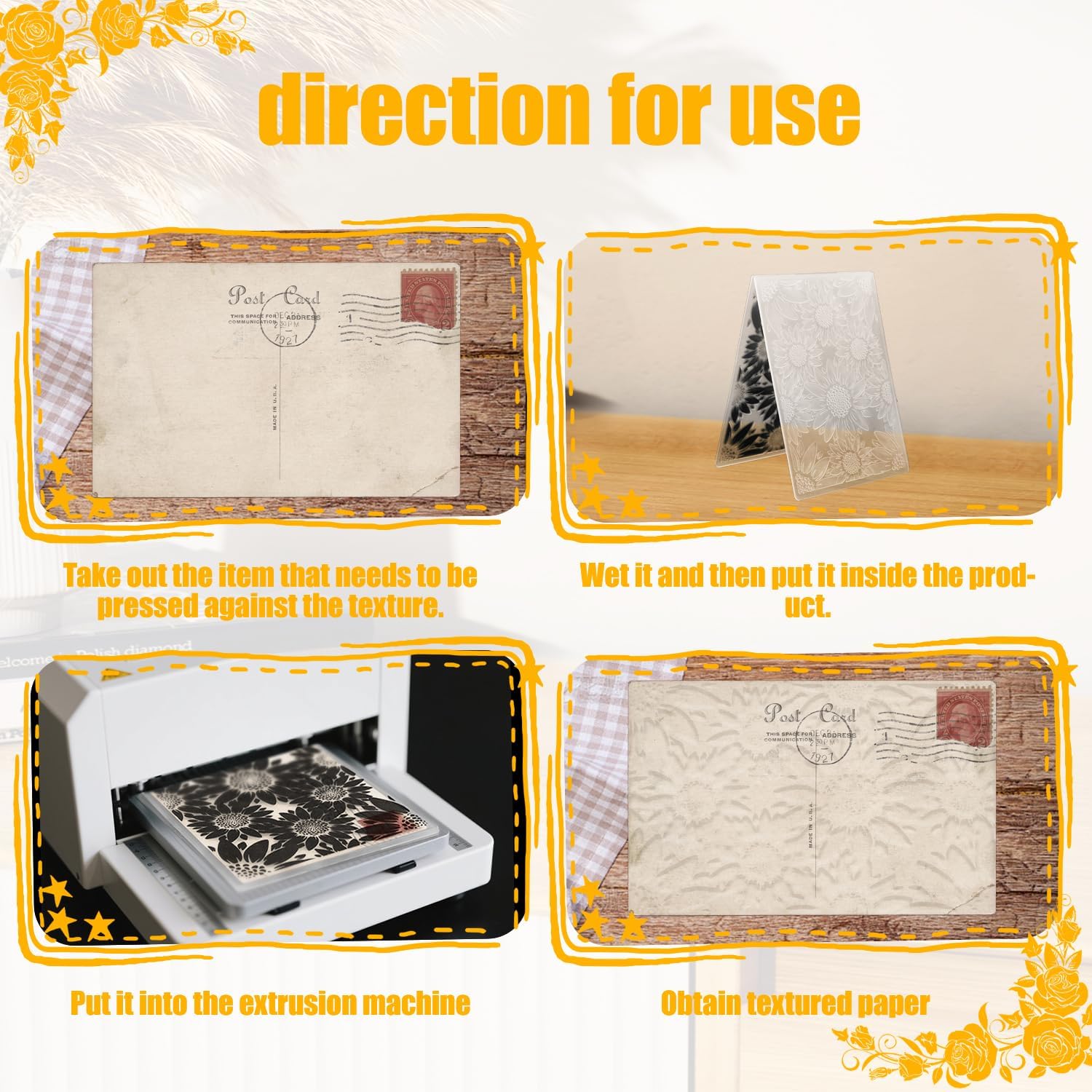 - 3D Floral Patterns: Each set includes two embossing folders with distinct sunflower and rose designs. The deep 3D texture brings lifelike floral details to paper, instantly elevating the visual appeal of your handmade cards and scrapbook pages. Whether you’re new to DIY or familiar with paper art, these patterns add a touch of charm to any handmade work.