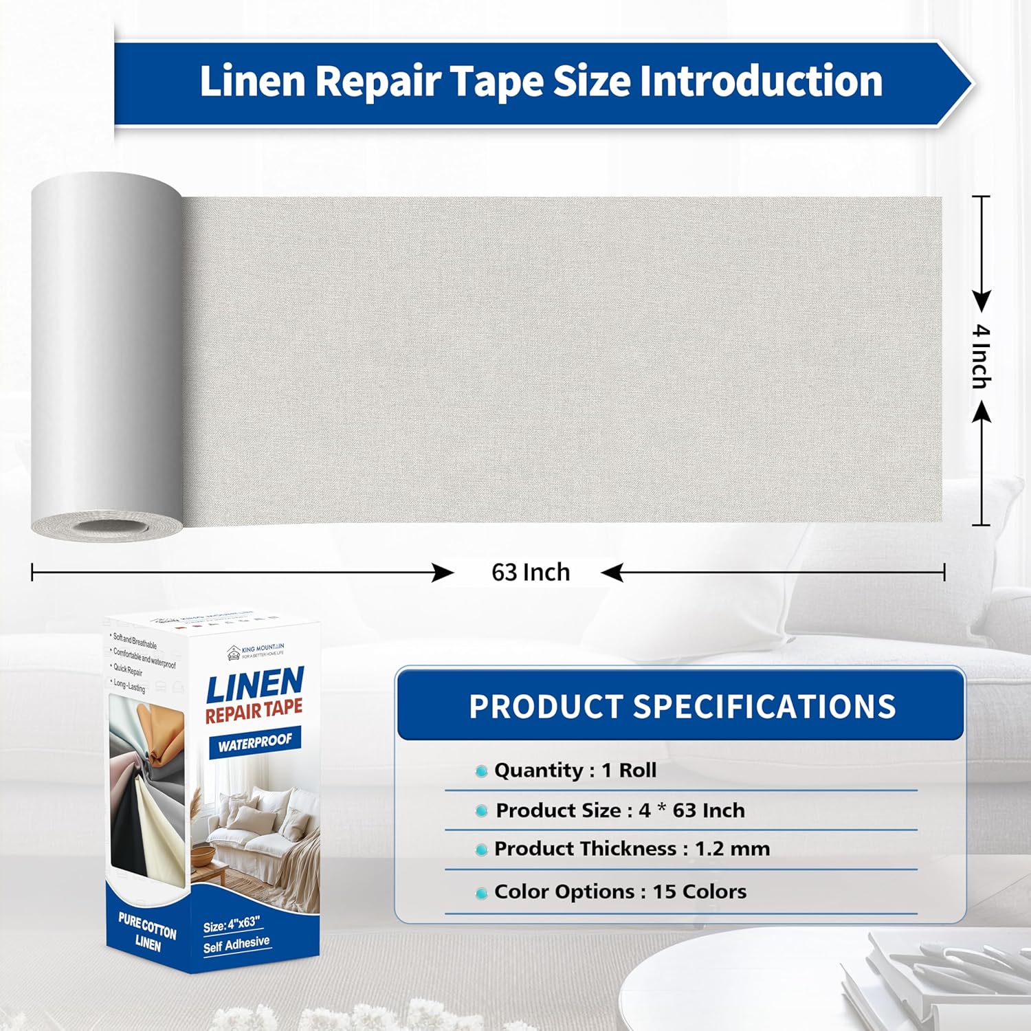 KING MOUNTAIN Linen Repair Patches, Self-Adhesive Linen Fabric Patches, 4 X 63 inch Extra Size, Multi Color, Can be Used for Linen Sofa Repair and Linen Clothes Repair (Beige)