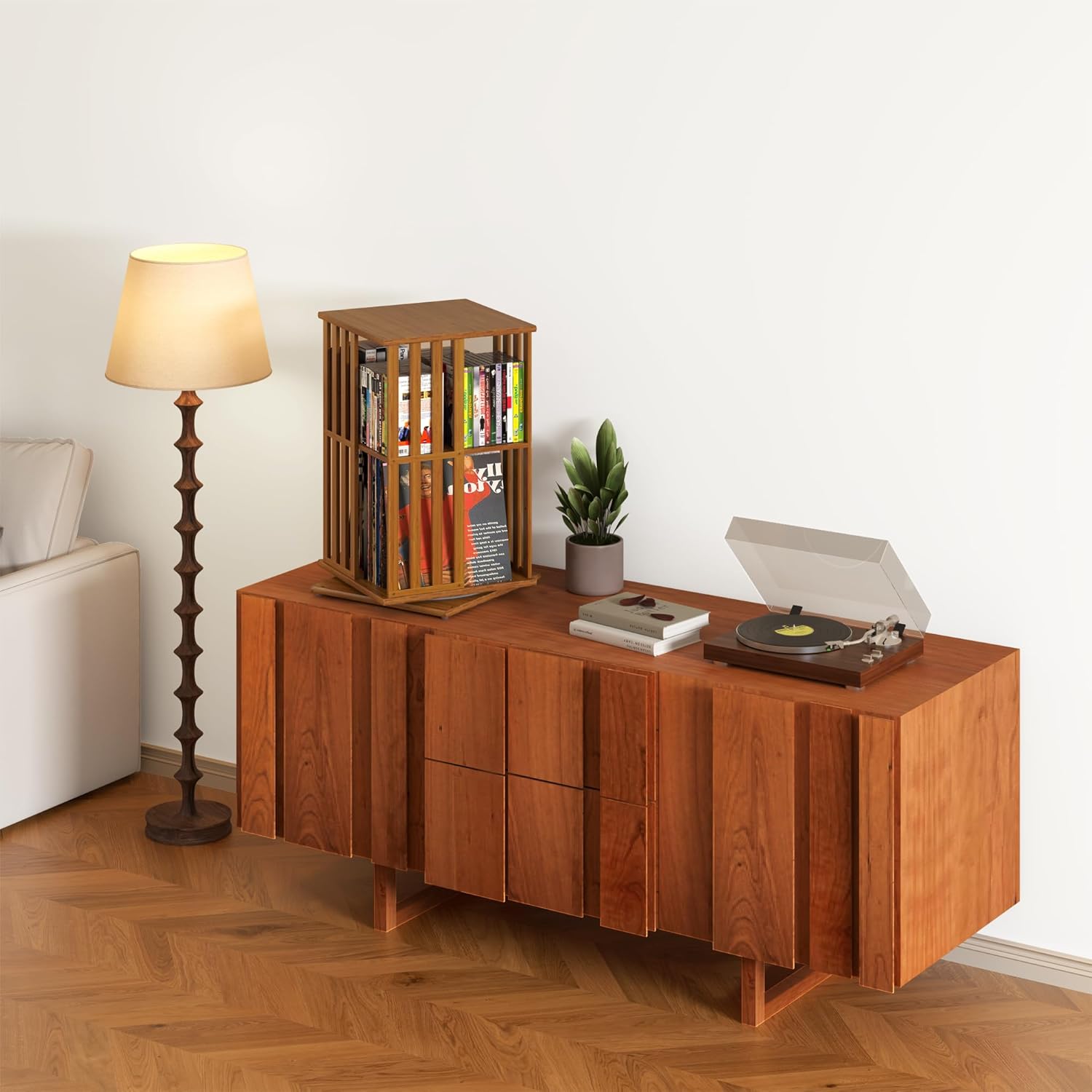 - 360° Rotating Bookshelf with Stable Base: Enjoy effortless organization with this rotating bookshelf tower—smooth 360° spin lets you find books, movies, or décor in seconds without bending or rearranging. The sturdy bamboo base and reinforced structure keep your spinning bookcase stable and wobble-free, even when fully loaded. Ideal for living rooms, bedrooms, home offices, or small apartments.