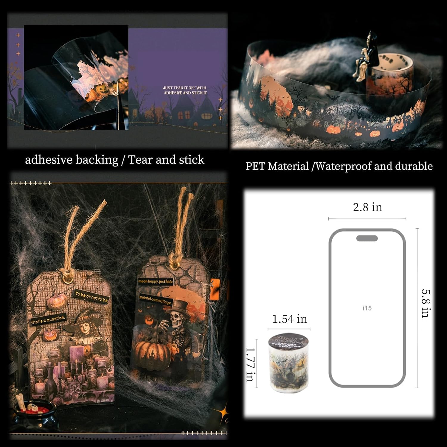 Gothic Scrapbook Tape Stickers,6 Rolls PET Halloween Pumpkin Washi Tape for Scrapbooking,Journaling,Junk Journal,Planner,DIY Arts Crafts(Dance Party)