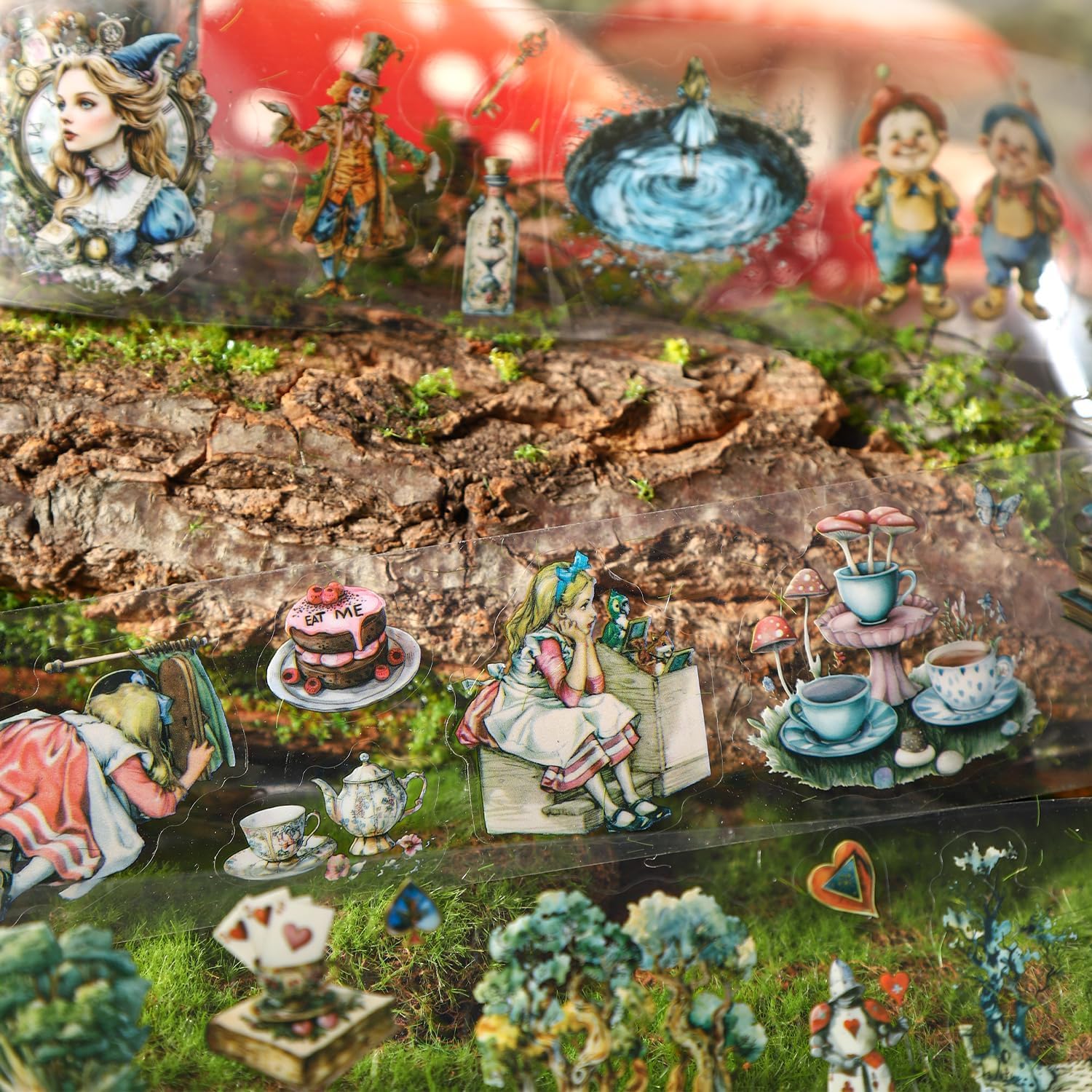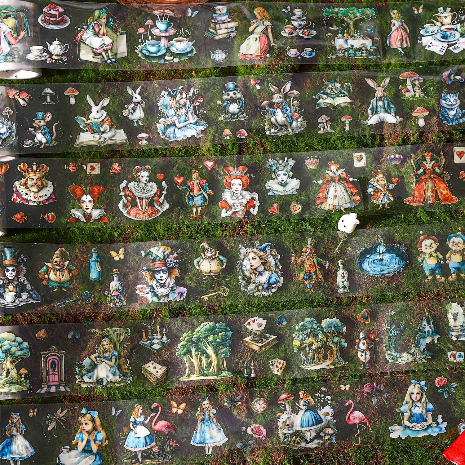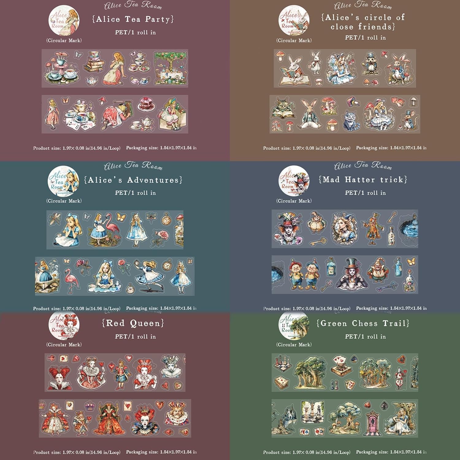 - Tape Stickers:You will receive 6 rolls of alice in wonderland-themed tape stickers featuring elements like alice,coffee,playing cards,clowns, the queen of hearts,the white rabbit,which perfect for adding a unique touch to your scrapbooking projects