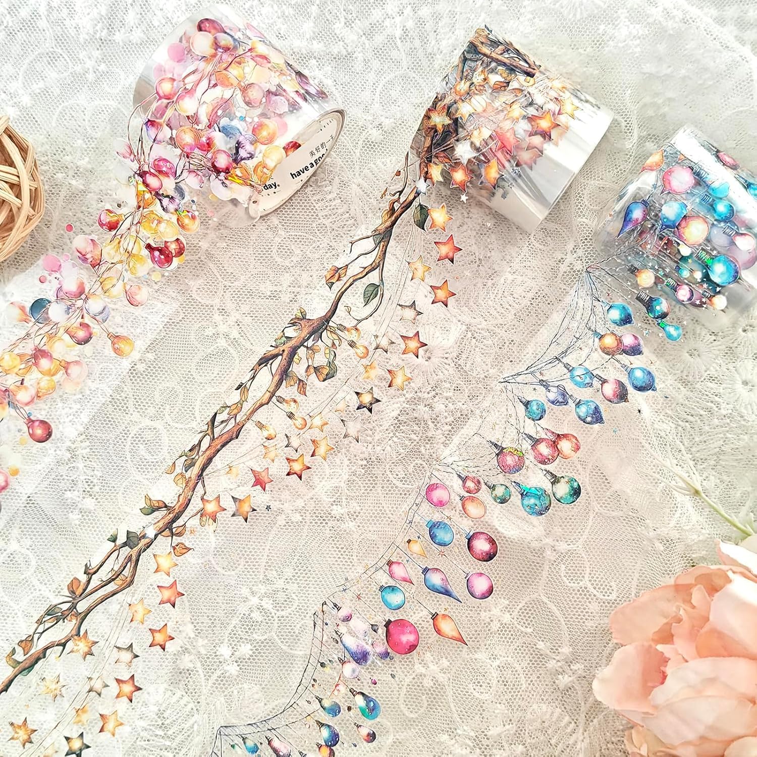 PET Christmas Washi Tape Stickers Set,3 Rolls Lighting Scrapbook Tape Stickers for Journaling,Junk Journal Supplies,DIY Craft,Notebook,Phone Case(Star Light)