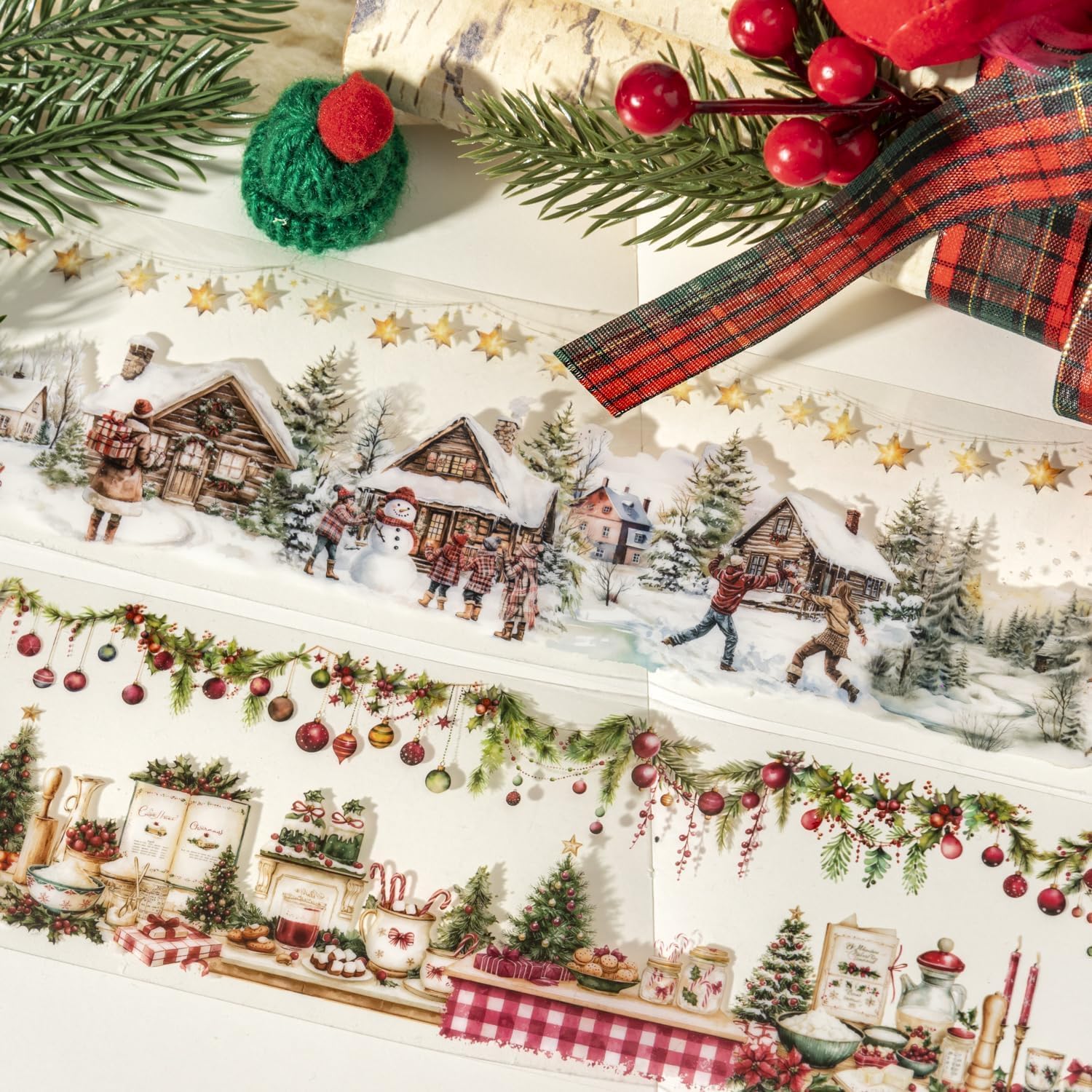 - Tape Set:The tape set contains 6 rolls of christmas themes.There are elements such as christmas tree,santa claus,reindeer,snowman,characters etc