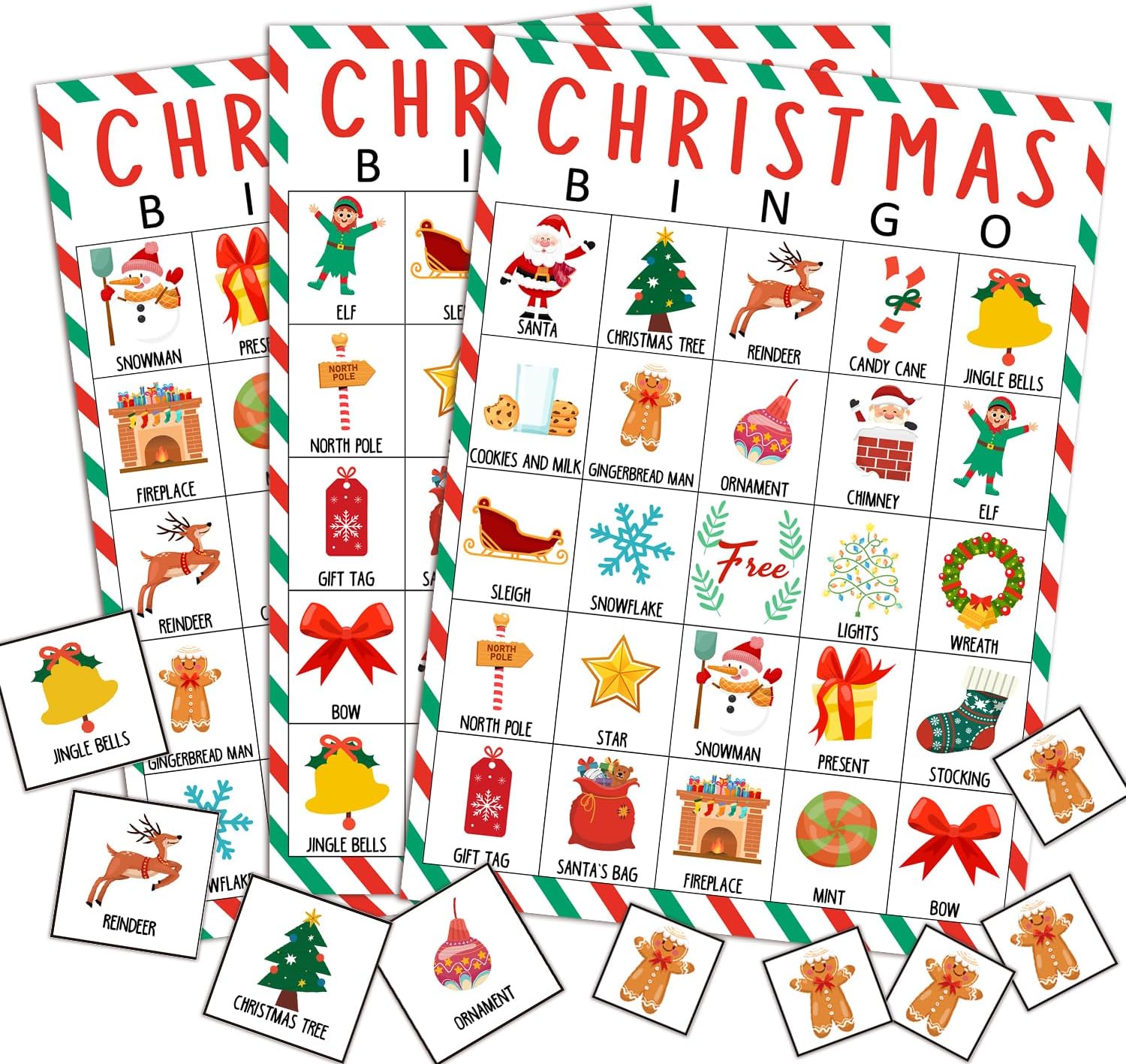 Christmas Bingo Cards, 24 Players Xmas Bingo Cards for Adults Large Group, Fun & Exciting Xmas Games for Family Activities, Classroom Party, Holiday Entertainment, Christmas Party Favors -09