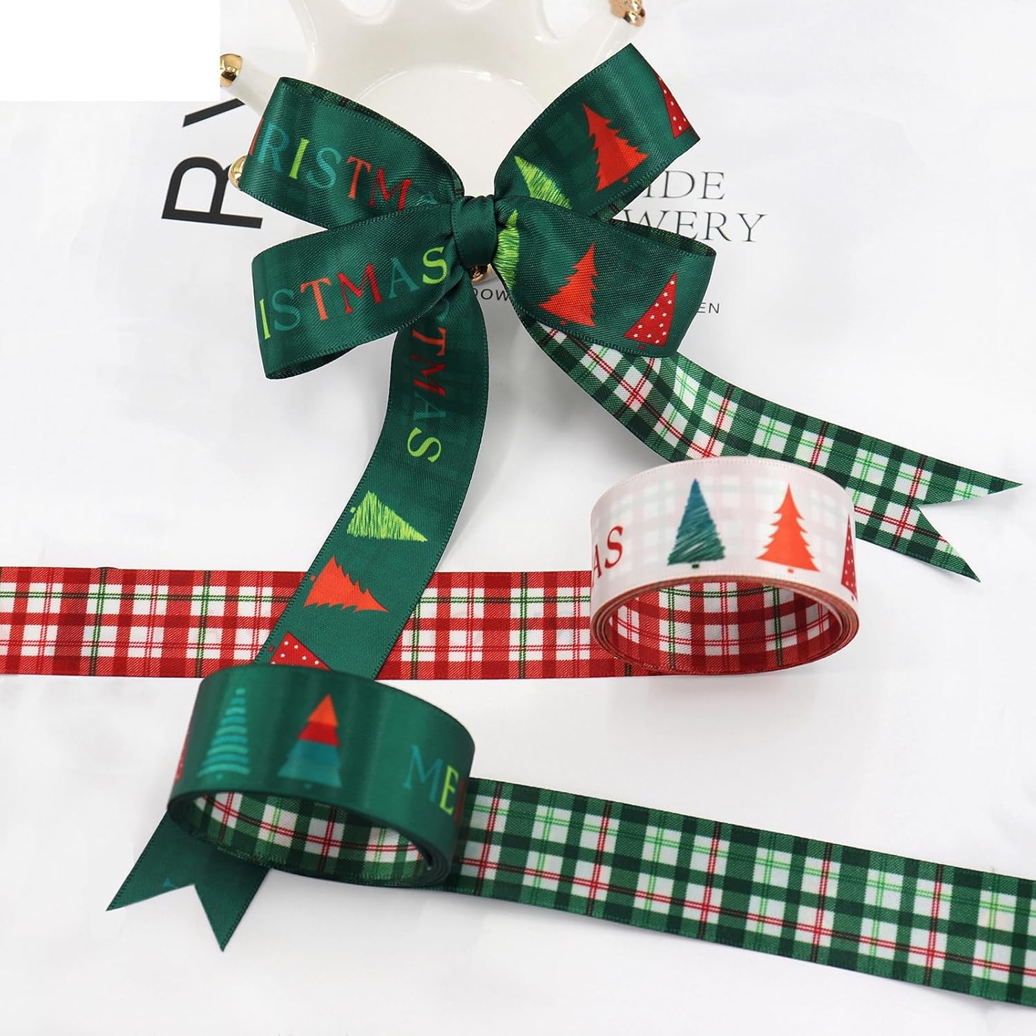 - Christmas Ribbon 3 Size:(3/8 Inch)in wide by 10 yards in length,(5/8Inch)in wide by 5 yards in length,(1 Inch)in wide by 5 yards in length. Each size 2 Rolls wrapping, enough ribbons to meet your holiday gift-wrapping and party-decorating needs