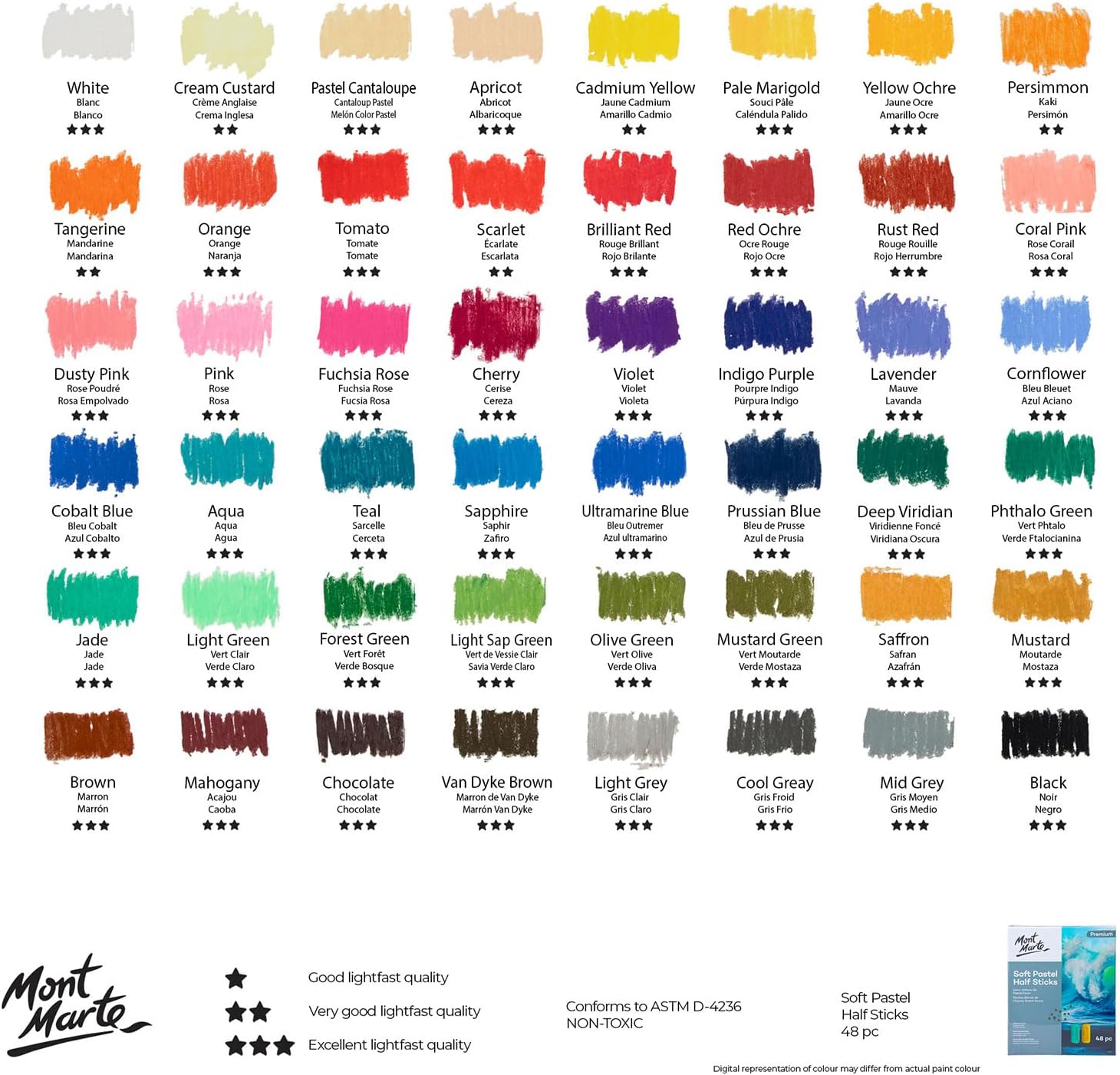 Mont Marte Soft Pastel Half Sticks 72pc, Pastels Art Supplies, Artist Quality Pastels, Extra Soft and Smooth Texture, Ideal for Professional Level Artwork