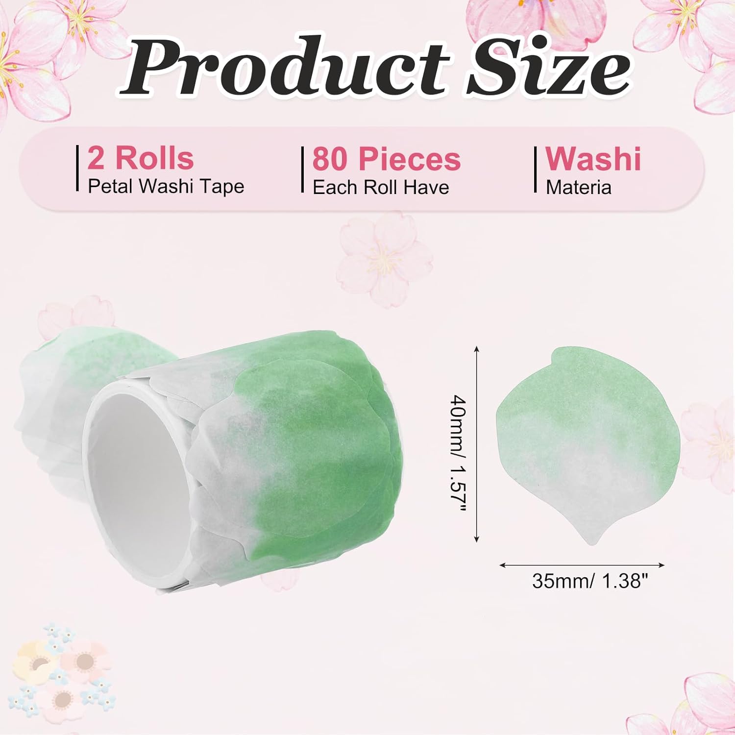- Package & Size: You will receive 2 rolls of grid washi tape, each roll contains 80 petal patterns, and each piece is in the size of 40 x 35 mm/1.57 x 1.38 inch(LxW). You can use these washi tapes to decorate your DIY projects. Note: Actual colors may vary due to lighting or display differences.