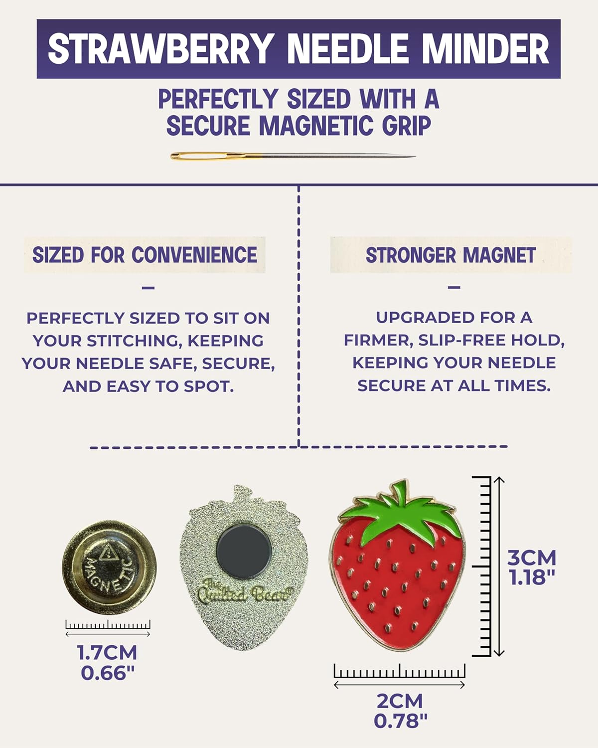 The Quilted Bear Needle Minder - Needle Minder Magnet for Keeping Sewing & Embroidery Needles, Cross Stitch Needles Safe When Stitching Cross Stitch Supplies & Embroidery Supplies (Strawberry)