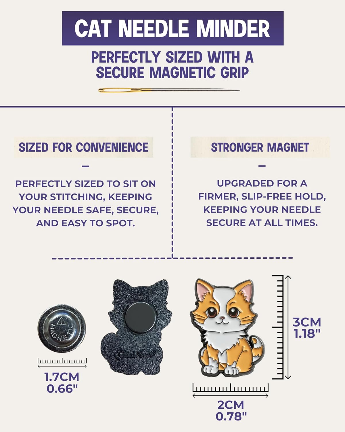 The Quilted Bear Needle Minder - Needle Minder Magnet for Keeping Sewing & Embroidery Needles, Cross Stitch Needles Safe - Stress Free Stitching Cross Stitch Supplies & Embroidery Supplies (Cat)