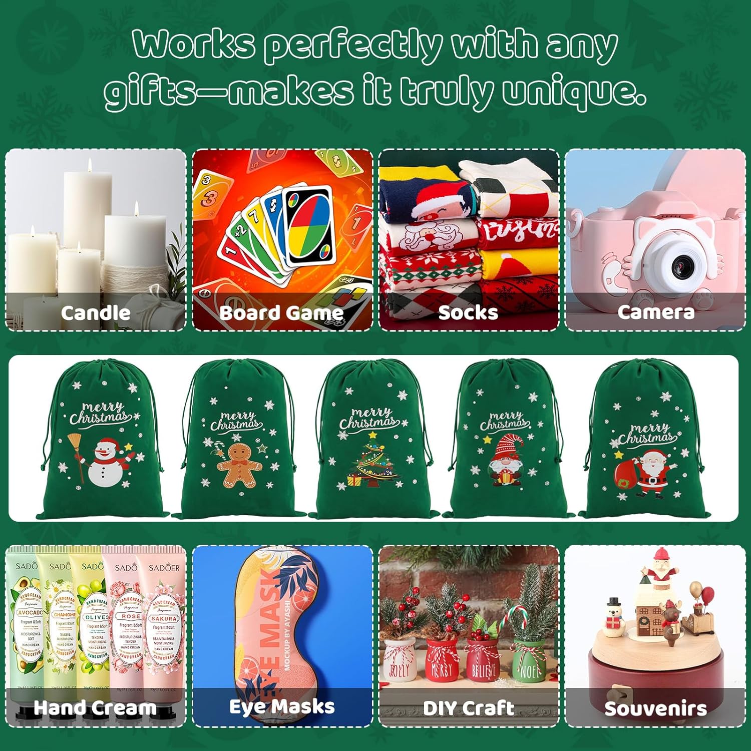 - Christmas Charm – Add festive cheer to every gift! These velvet drawstring bags make wrapping quick and stylish, while doubling as Christmas decorations for your home, school, office, church, or holiday parties. Wherever you use them, they bring warmth and joy to the season.