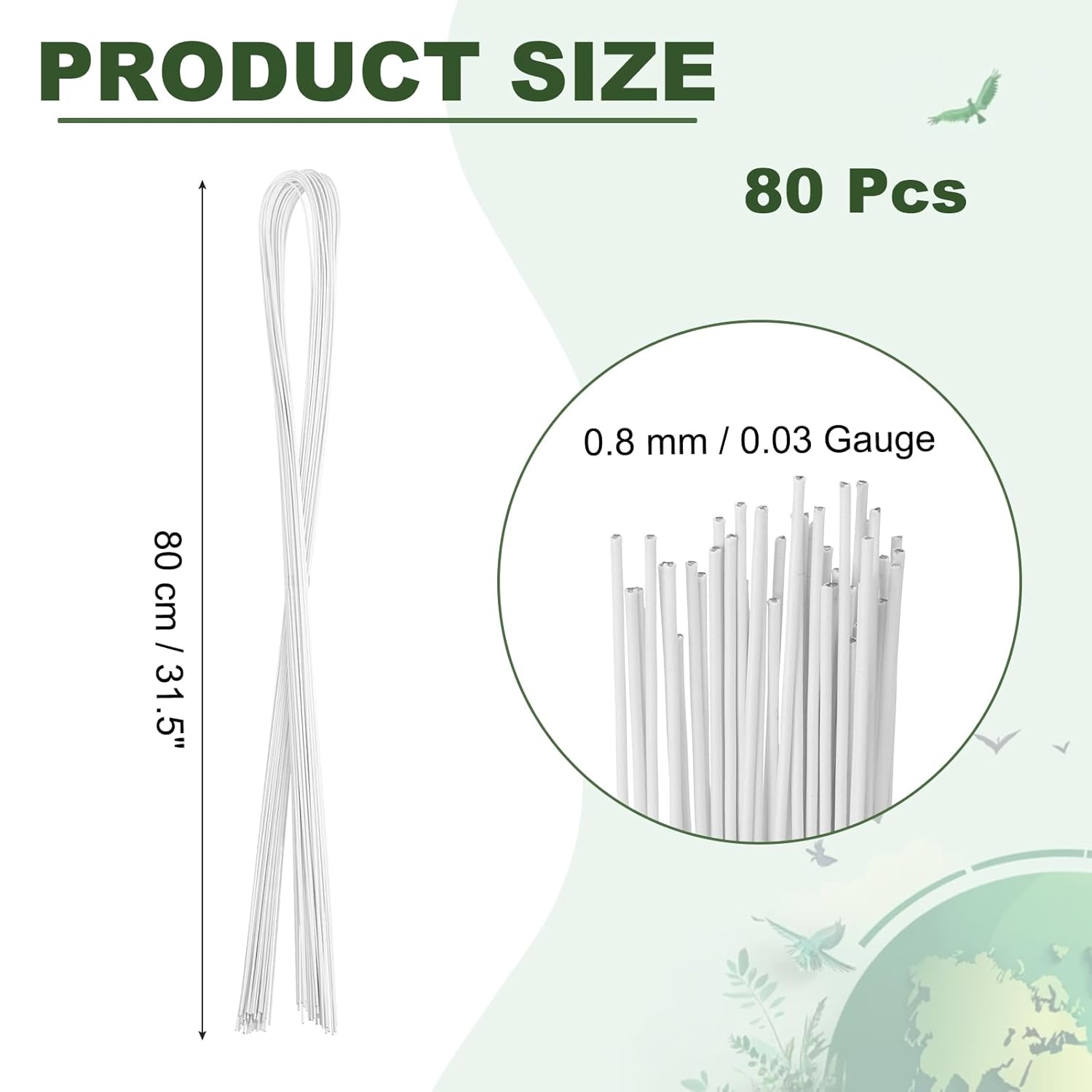 - Color: White; Material: Iron; Gauge: 22; Length: 80 cm / 31.5 inch; Diameter: 0.8 mm / 0.03 inch; Packing List: 2 Pack x Floral Flower Stem Wire (40 pieces per pack)