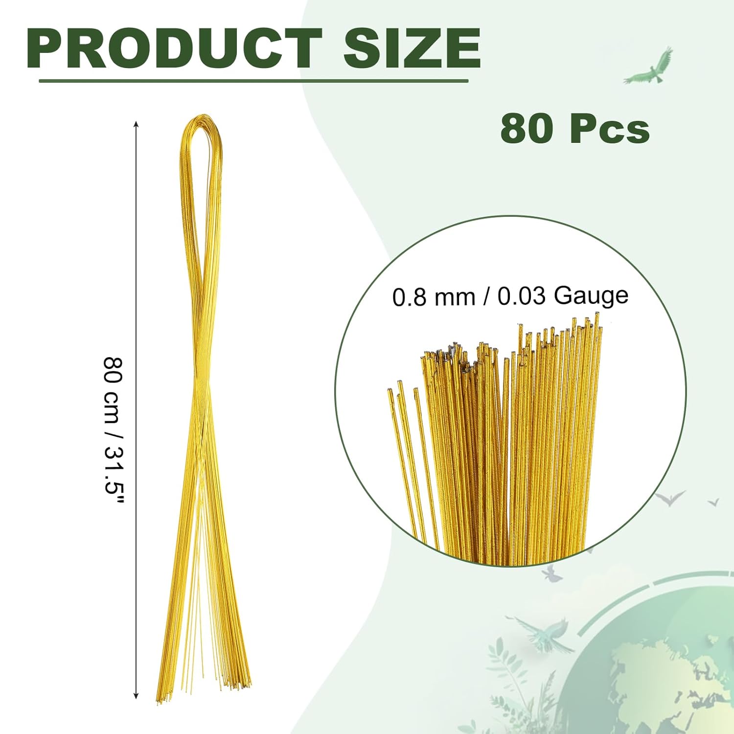 - Color: Gold Tone; Material: Iron; Gauge: 22; Length: 80 cm / 31.5 inch; Diameter: 0.8 mm / 0.03 inch; Packing List: 2 Pack x Floral Flower Stem Wire (40 pieces per pack)