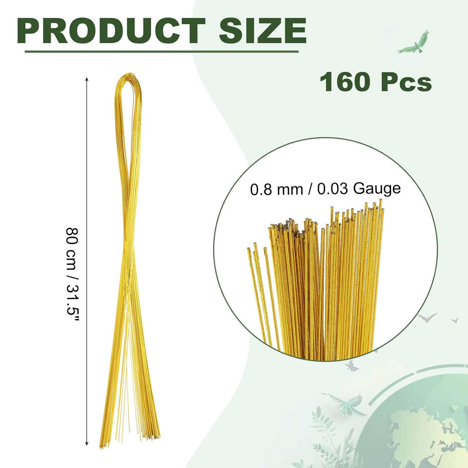 - Color: Gold Tone; Material: Iron; Gauge: 22; Length: 80 cm / 31.5 inch; Diameter: 0.8 mm / 0.03 inch; Packing List: 4 Pack x Floral Flower Stem Wire (40 pieces per pack)
