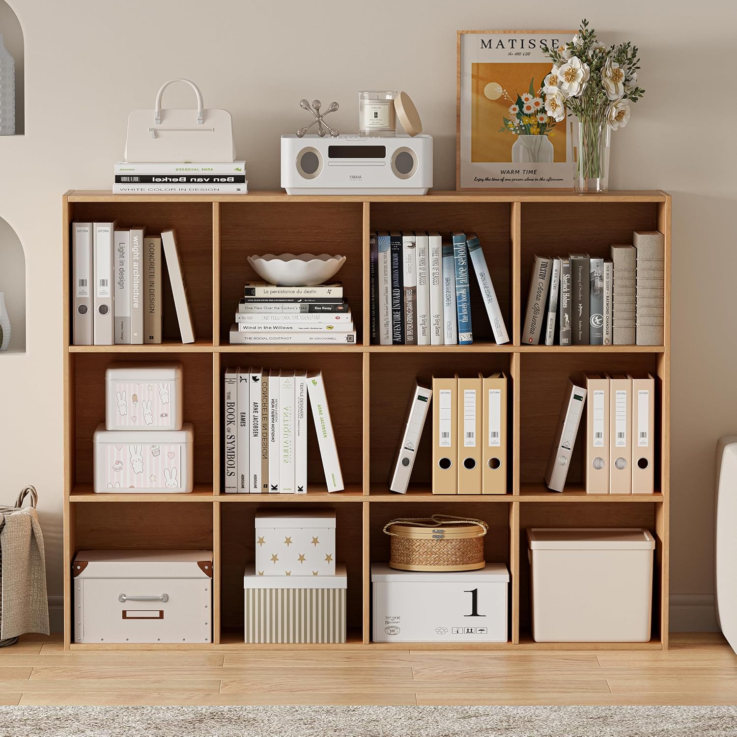 Wooden Cube Storage Organizer with Closed Back Panel, 11in Cube Shelf Opening, Bookshelf, Display Shelf,Closet Cabinet for Home and Office (Natural Oak, 12-Cube 35.98L*9.45W*47.72H)