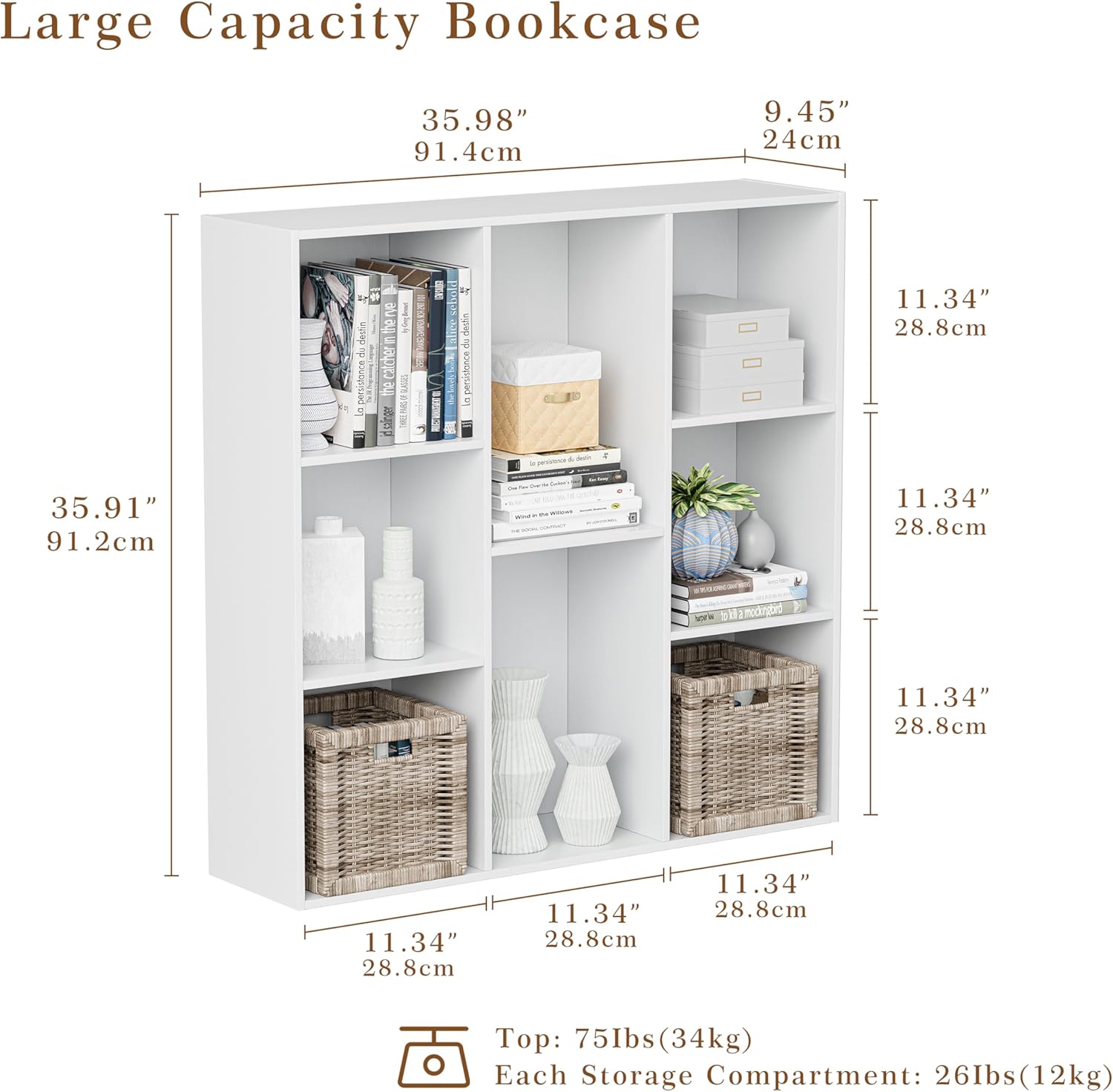 Wooden Cube Storage Organizer with Closed Back Panel, 11in Cube Shelf Opening, Bookshelf, Display Shelf,Closet Cabinet for Home and Office (Embossed White, 8-Cube 35.98L*9.45W*35.91H)