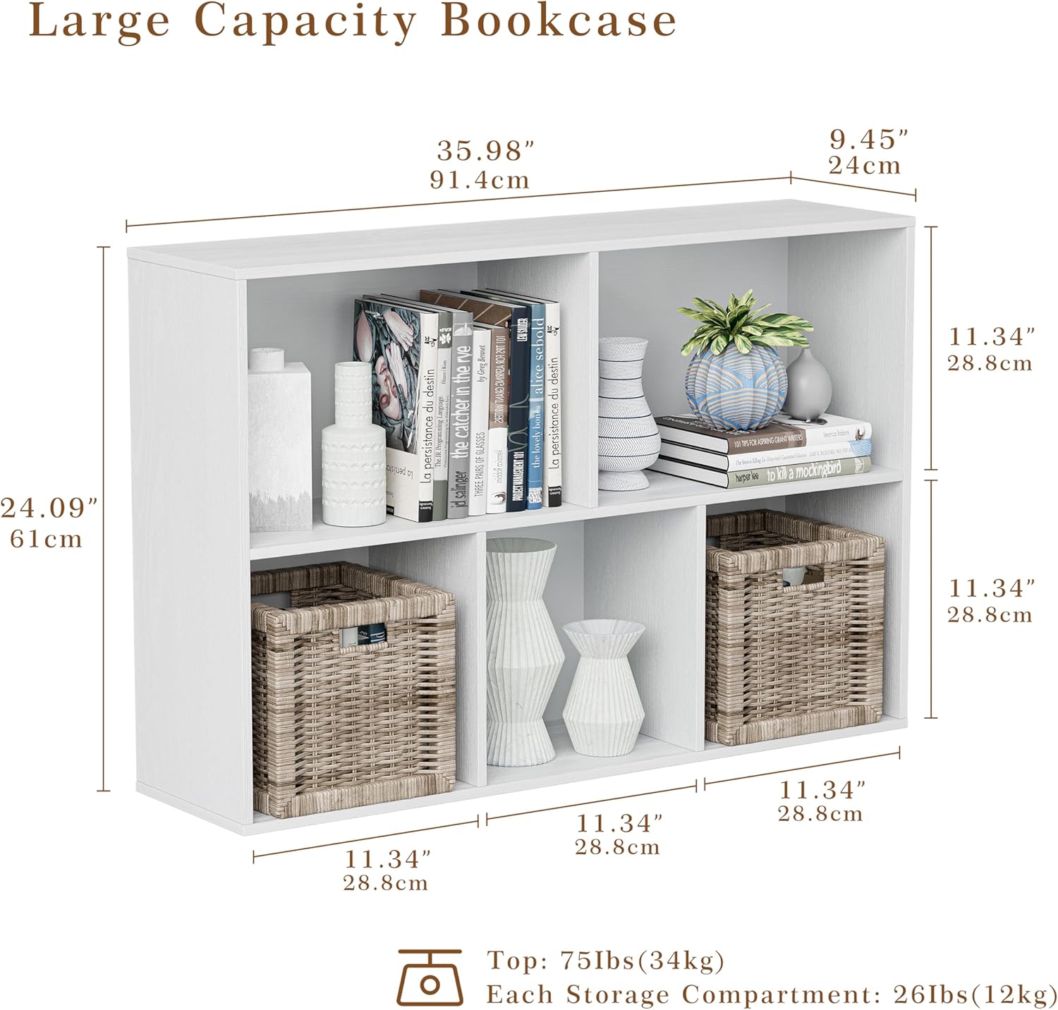 Wooden Cube Storage Organizer with Closed Back Panel, 11in Cube Shelf Opening, Bookshelf, Display Shelf,Closet Cabinet for Home and Office (Embossed White, 5-Cube 35.98L*9.45W*24.09H)