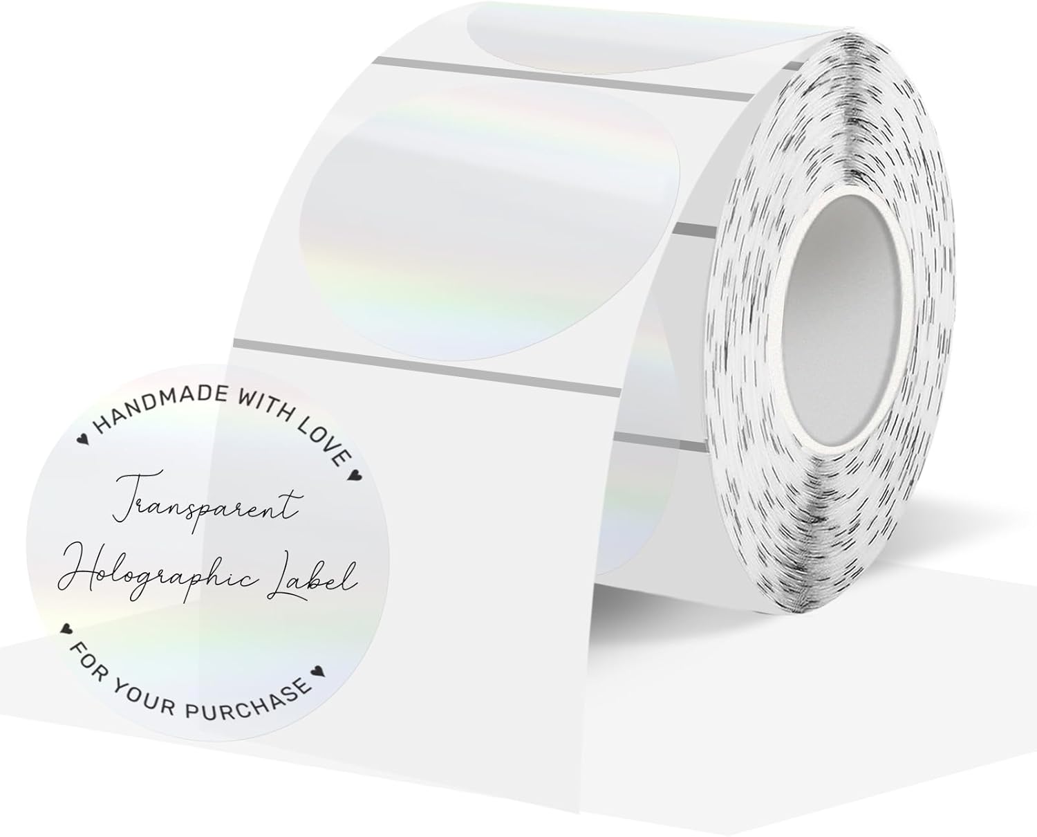 - Package: 1.5" Round Transparent Holographic Thermal Sticker Labels, 300 Labels/Roll. Clear labels for thermal printer, No ink toner or ribbons are needed