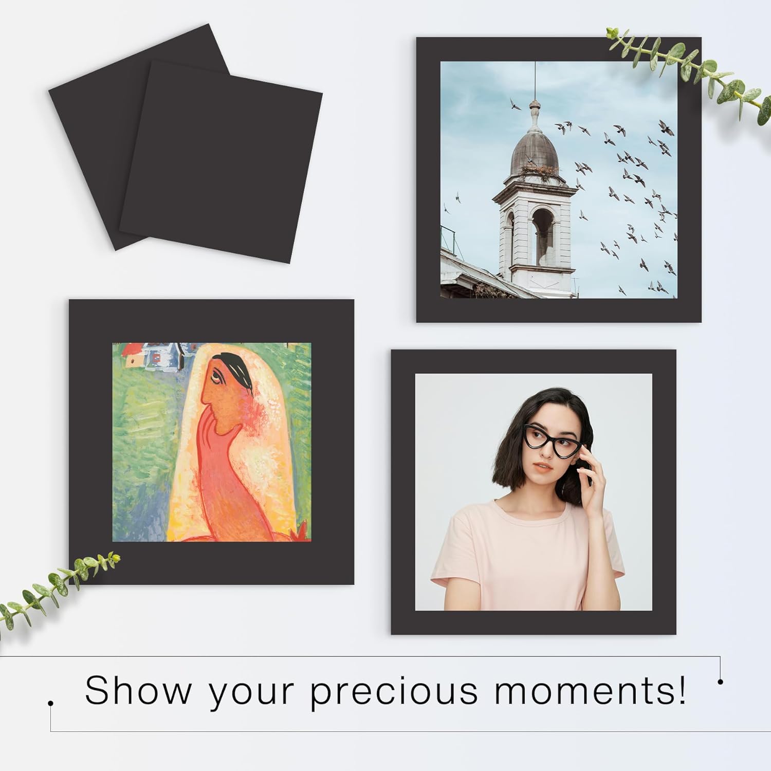 Golden State Art, 8x8 Uncut Photo Mat Matboard - Black Uncut Mats for DIY Projects, Presentation Boards, Art Crafts, Prints (50 Pack)