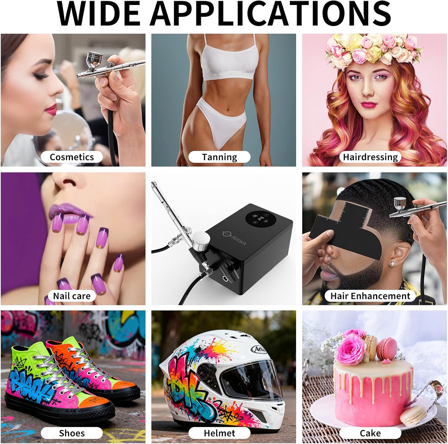- Easy to Use, Widely Application: This air brush kit is perfect for:scale model painting, automotive touch-ups, shoes T-shirt design, airbrush for nails,beauty makeup, cake decorating, ,DIY home deco, artistic graffiti, barber, hair,beard line up enhancement, tanning. This spray gun set can meet all your creative needs!