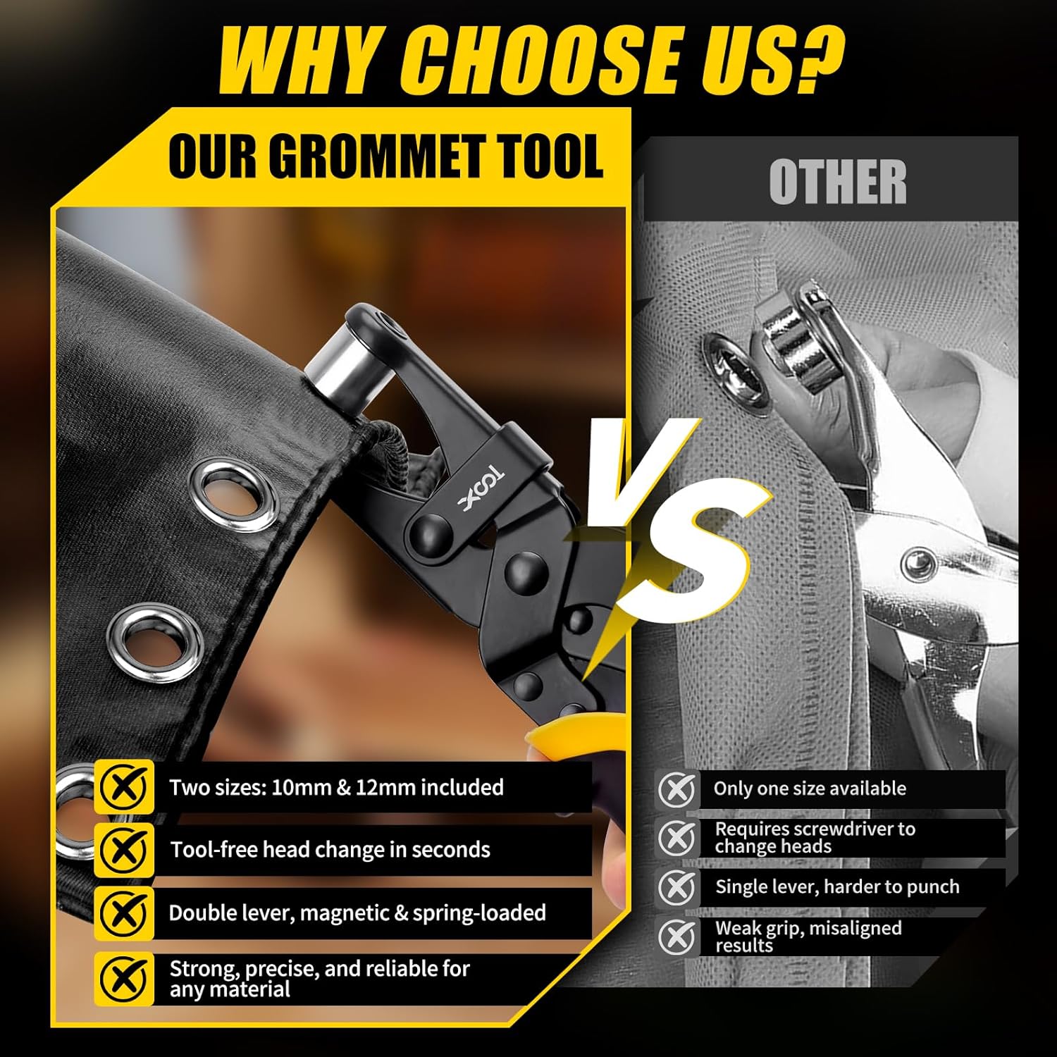 XOOL 2-in-1 Grommet Tool Kit, 1/2" & 3/8" 12mm&10mm Twist-Change Heads, Leathercraft Punching Tool with Magnetic System for Canvas, Leather, Tarps, DIY - 400PCS Grommets & Washers Included