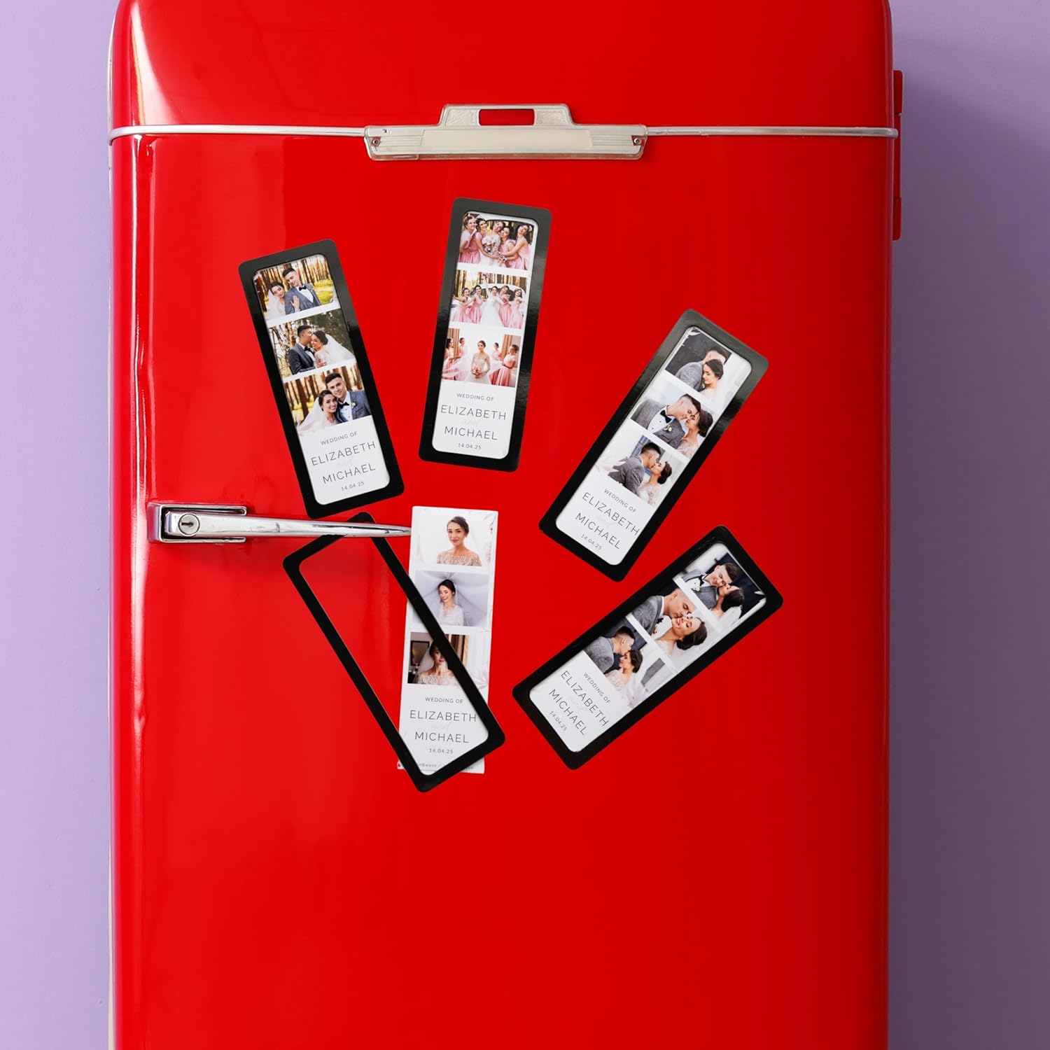 Magnetic Frames For 2x6 Photo Booth Strips – Set of 5 – White, Black, or Floral Design Photo Picture Holders – Magnetic Paper Cutout for Photobooth Photos – Simple Slim Frames for Fridge, Locker, or Party Keepsakes (5, BLACK)