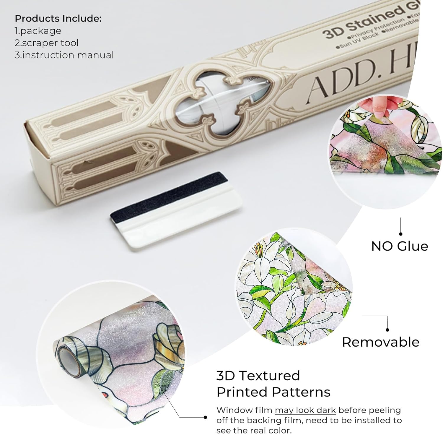 - Durable and Long-Lasting Quality -Privacy window film boasts durability with scratch-resistant, fade-proof materials, preserving its attractive design for years. Its vivid colors and patterns enhance any window with lasting elegance.