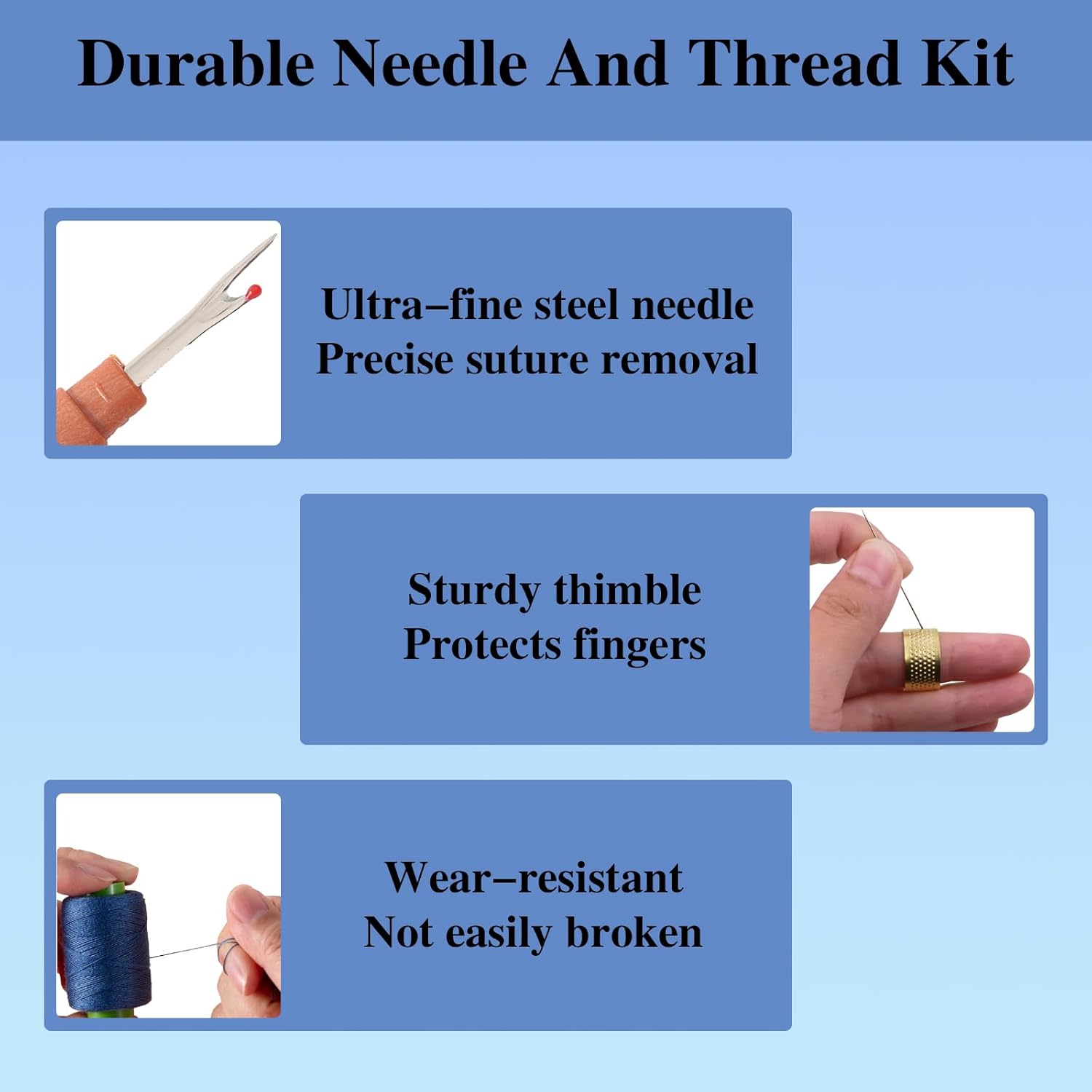 - Steel Needle Sewing Kit Accessories: Stainless steel needles for hand sewing kit includes 3 practical sewing accessories. The double-ended needle threader in the stainless steel sewing needles kit helps seniors or those with poor vision thread needles quickly. The seam ripper in the steel needles for hand sewing kit precisely removes hidden stitches from jeans, sweaters, and other garments. The thimble in the 34 piece big eye steel needle set protects fingers during sewing
