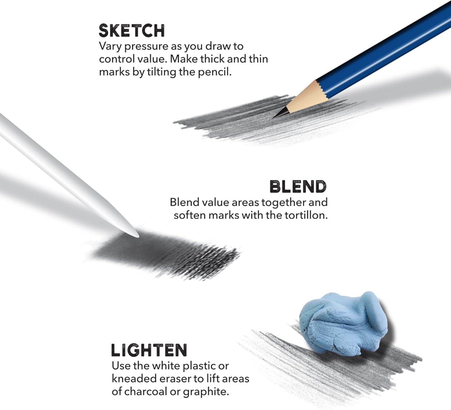 - Drawing Pencils for Sketching β Use these art pencils for drawing and shading. This set of artist pencils includes 2 pencils each of 2H, HB, 2B, and 6B values. This variety of shades lets you create a range of values in your artwork.